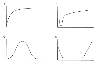 商品売上高を商品アイテム別にABC分析したグラフはどれか。ここで,縦軸は売上高,横軸は商品アイテムを示す。