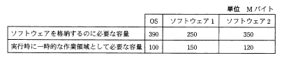 パソコンで,ソフトウェア1とソフトウェア2を利用したい。OSとそれぞれのソフトウェアが必要とする磁気ディスクの容量は,表のとおりである。これらのソフトウェアを格納して実行するために最低限必要な磁気ディスクの容量は,何Mバイトか。 ここで,データ格納用として10Mバイトは確保しておくこととし,ソフトウェア1とソフトウェア2を同時に使うことはないものとする。