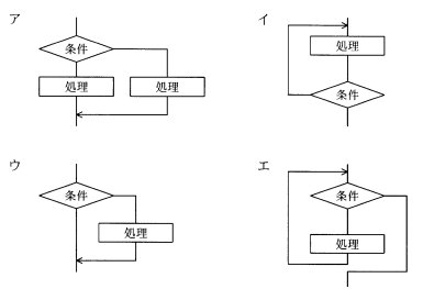 プログラムの制御構造のうち,while-do型の繰返し構造はどれか。