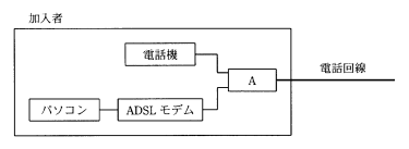 既存の電話回線を利用したADSLサービスで,ADSLモデムと電話機を接続する装置Aはどれか。