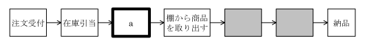 販売流通業の注文受付から納品までの業務遂行の流れを示している。図中のaはどれか。ここで,網掛けの部分は表示していない。